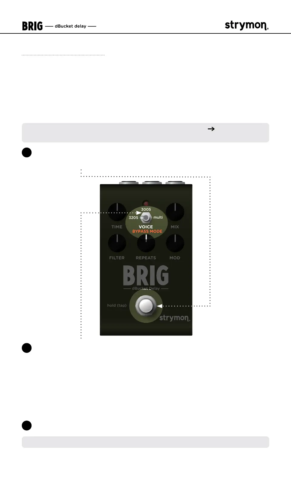 3 Press the FOOTSWITCH to store the Bypass Mode and begin using Brig�