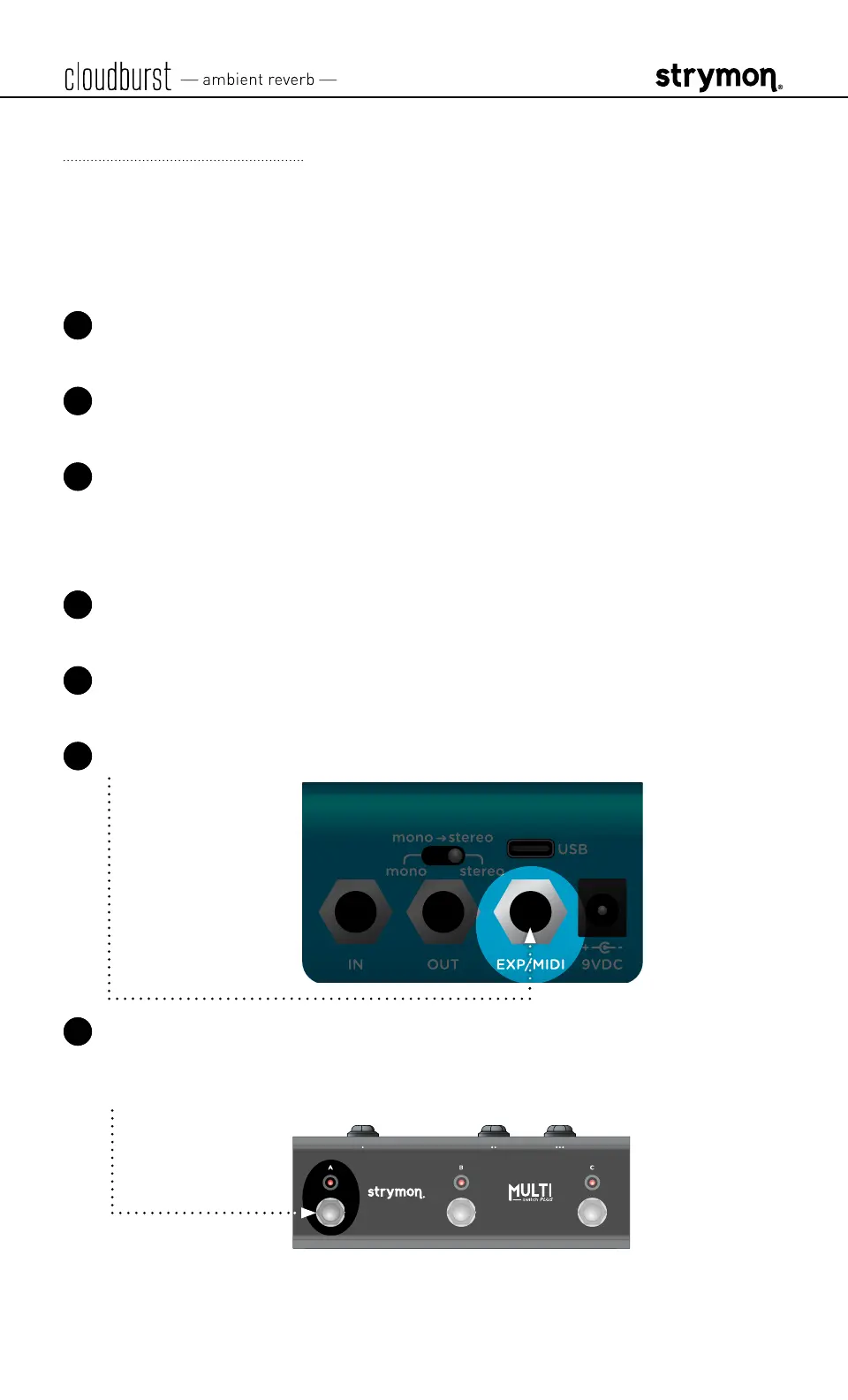 6 Connect a TRS cable to cloudburst’s EXP/MIDI jack�