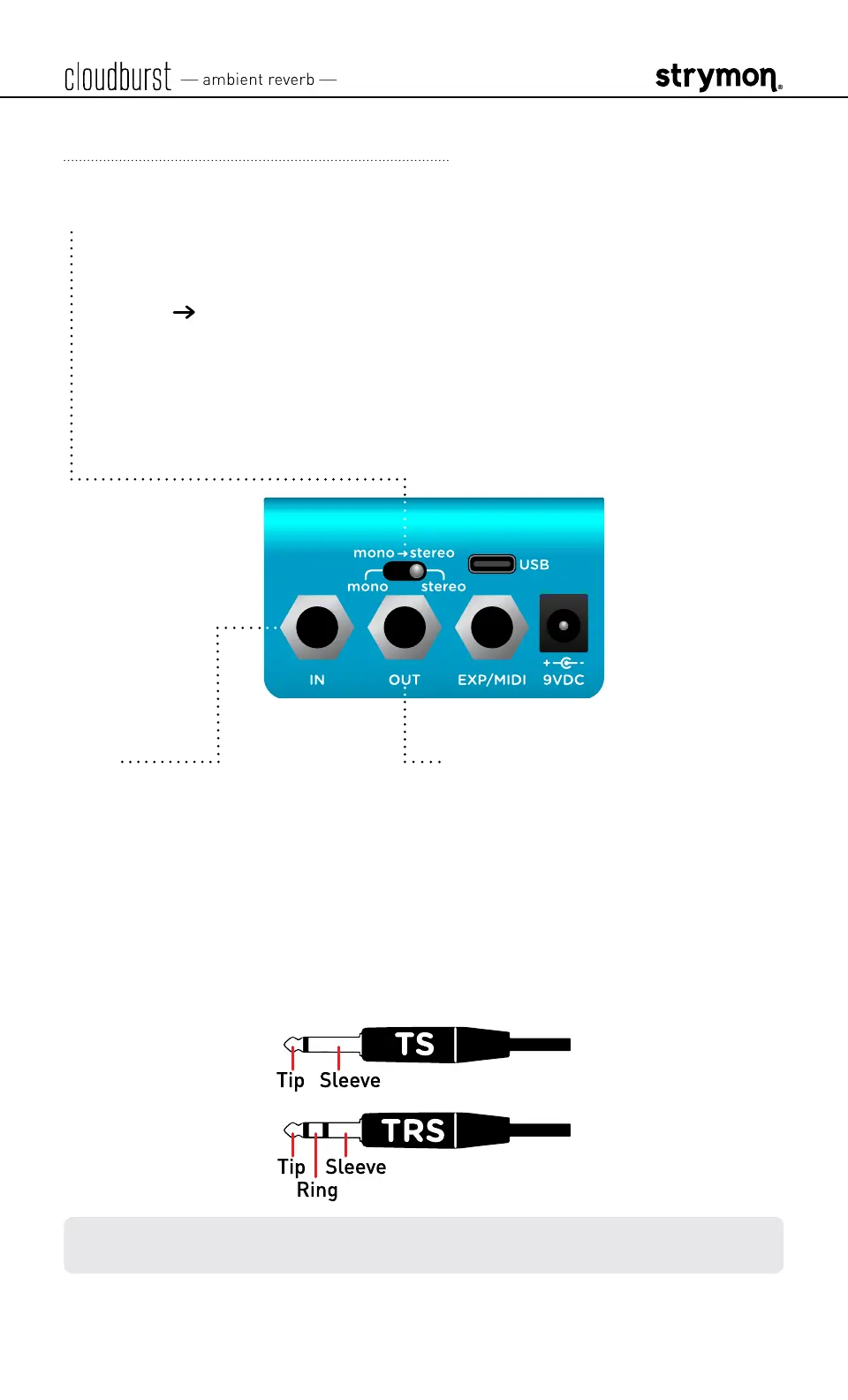 The cloudburst In and Out jacks can accept either TS or TRS type 1/4”
