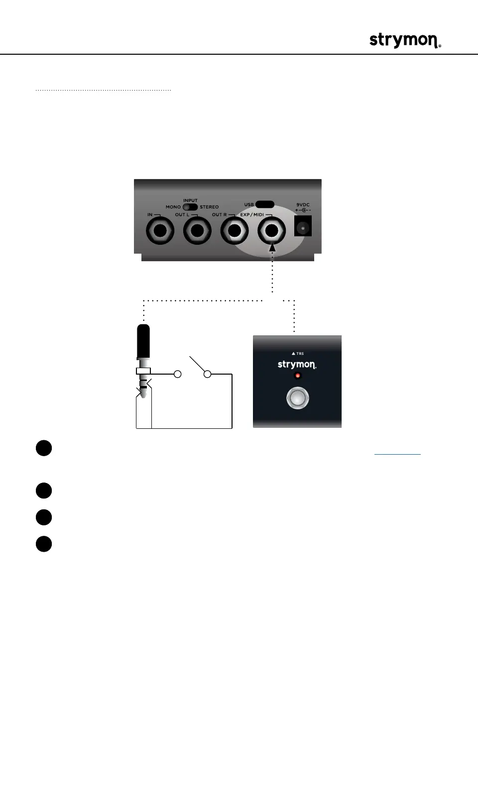 2 Connect an external switch with a TRS cable to the EXP/MIDI jack�