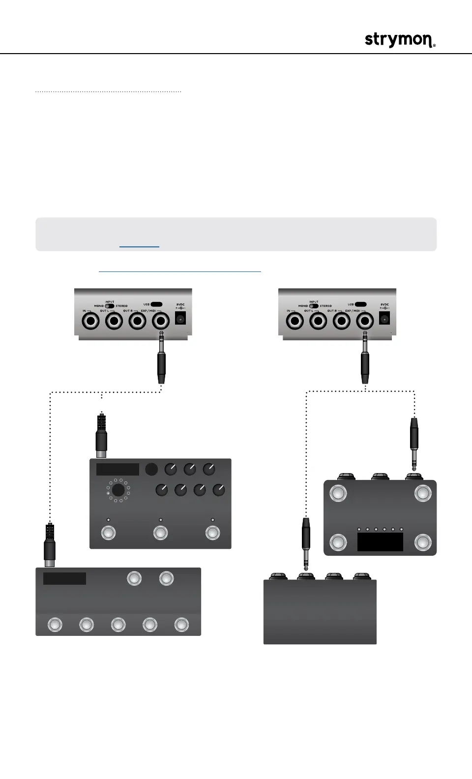 cable or a MIDI controller/interface, such as Strymon Conduit, with at