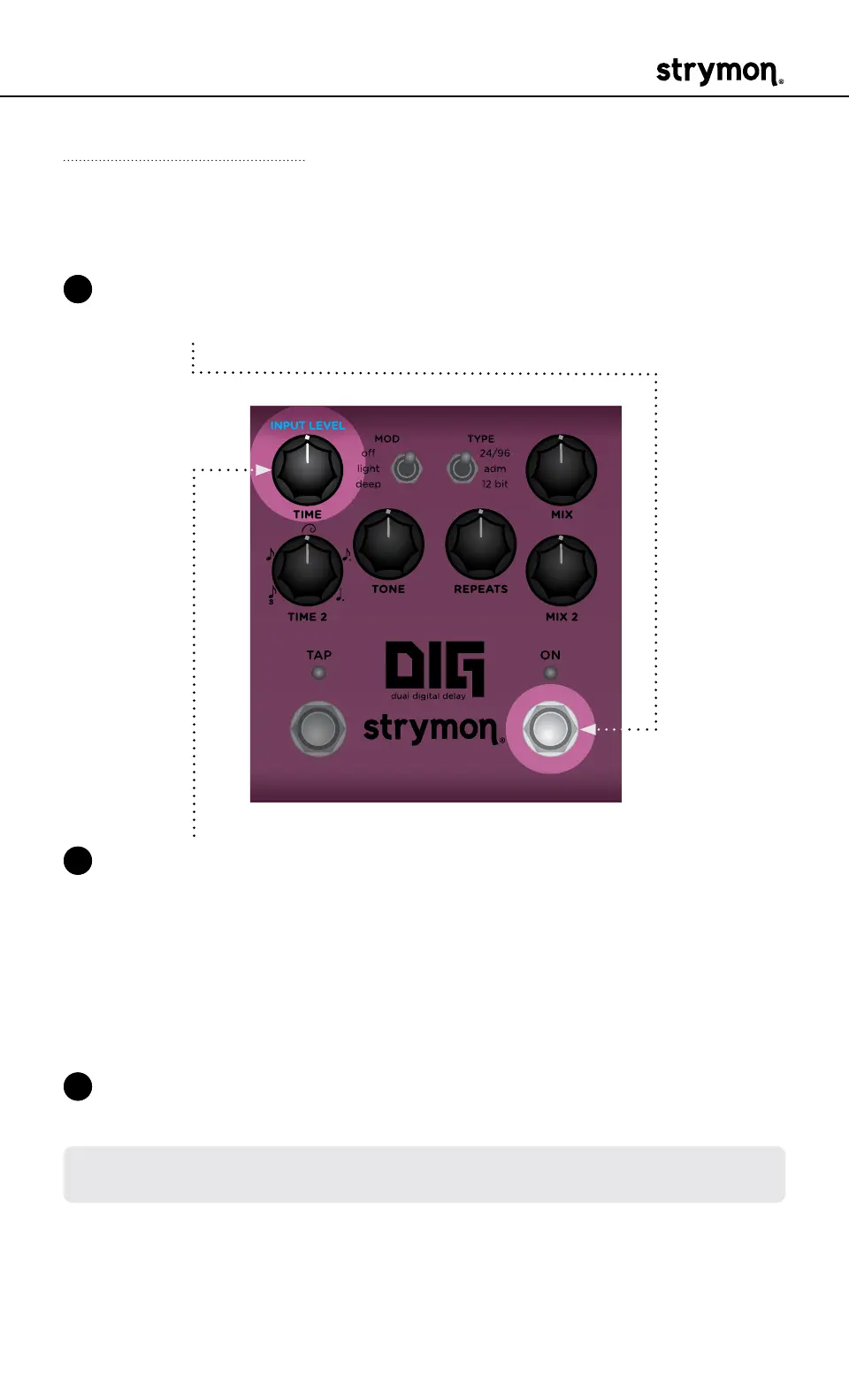 1 Press and hold the ON footswitch while powering up DIG� Once both