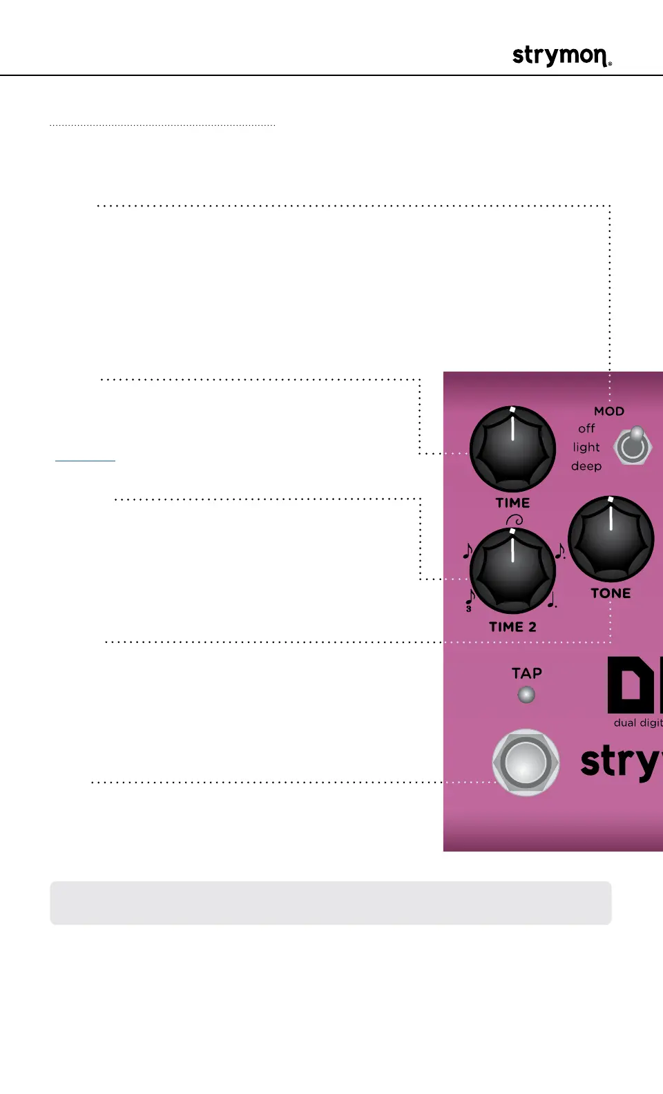 NOTE: Hold the TAP footswitch to engage circular repeats� Release the