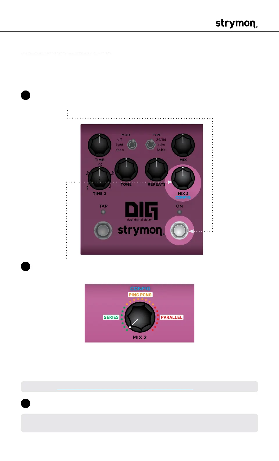 2 Turn the MIX 2 (CONFIG) knob to choose the desired dual delay con-