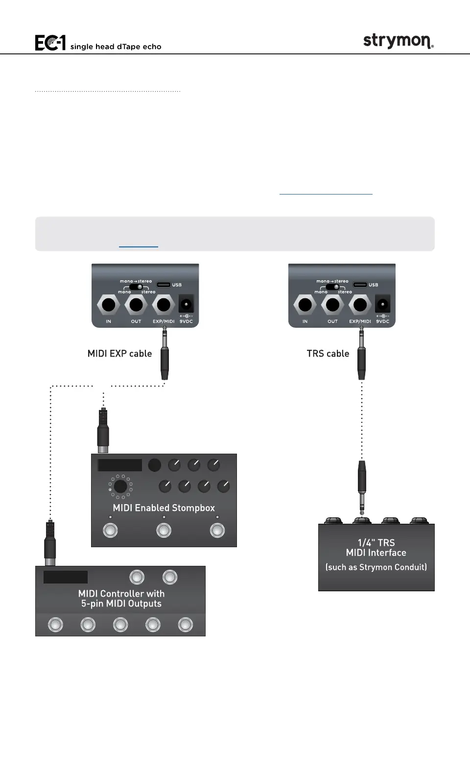 connected to the EC-1 EXP/MIDI jack� This requires a Strymon MIDI EXP