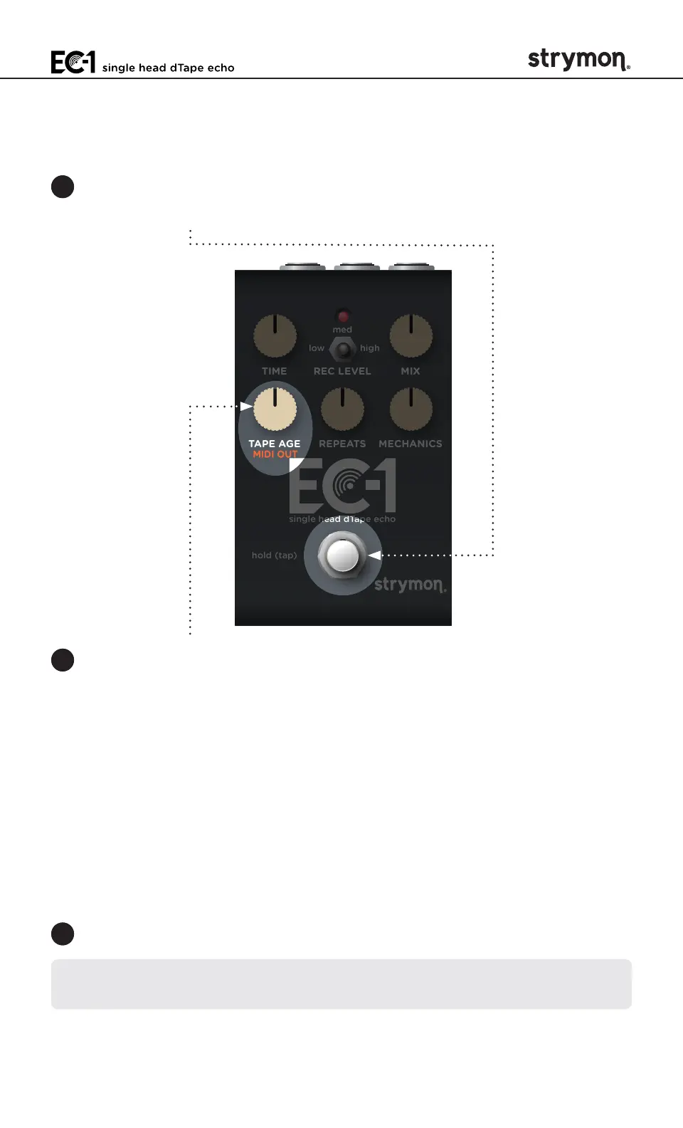 2 Turn the TAPE AGE (MIDI OUT) knob to select what kind of MIDI data is