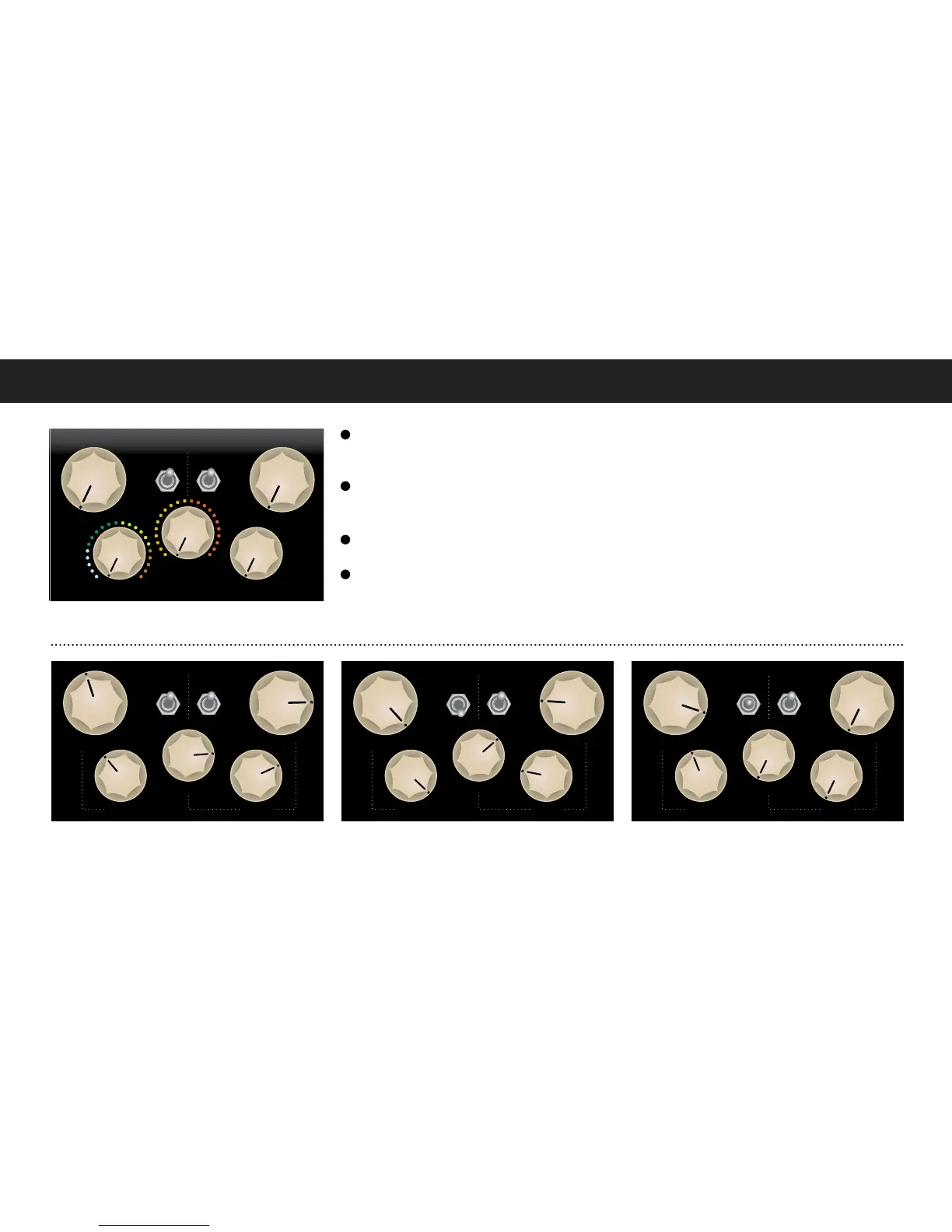 NOTE: Secondary functions are accessed by holding both footswitches while turning control knobs.