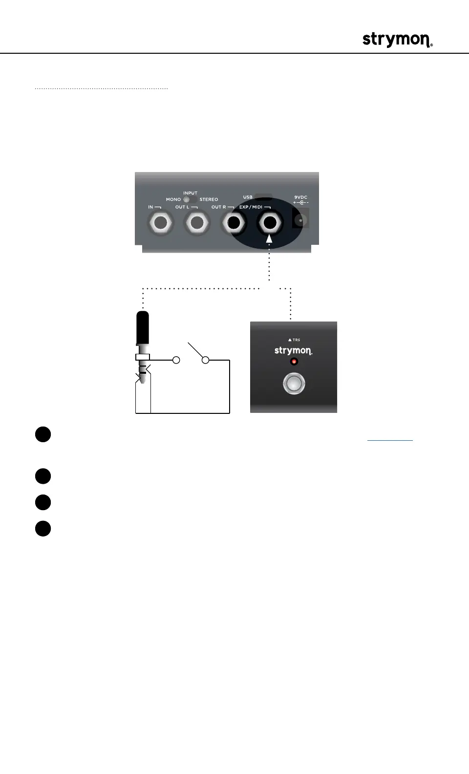2 Connect an external switch with a TRS cable to the EXP/MIDI jack�