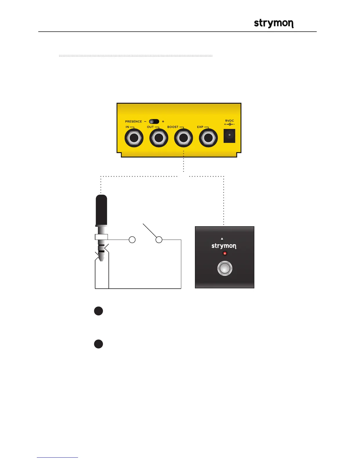 Connect an external footswitch with a TRS cable to toggle the