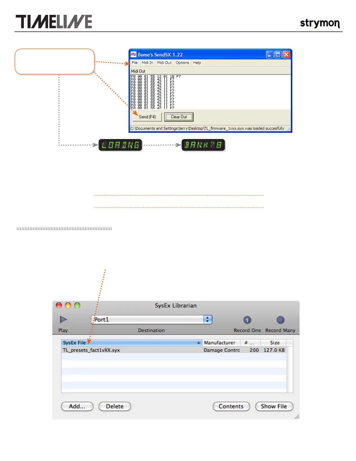 sysex file to your TimeLine. There will not be any indication on the display that the file is being received. This contains the factory
