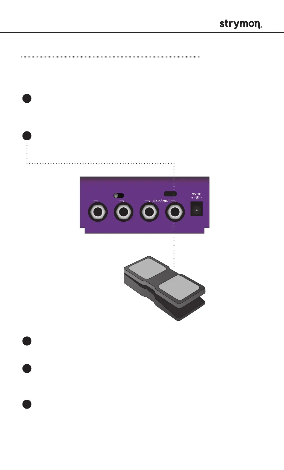 Connect an expression pedal to the EXP/MIDI jack of Zelzah