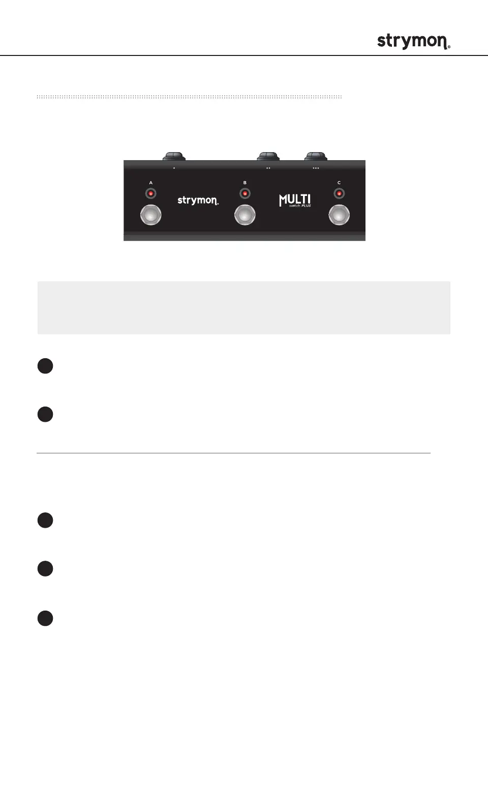 NOTE: Footswitches A, B, and C on MultiSwitch Plus correspond to