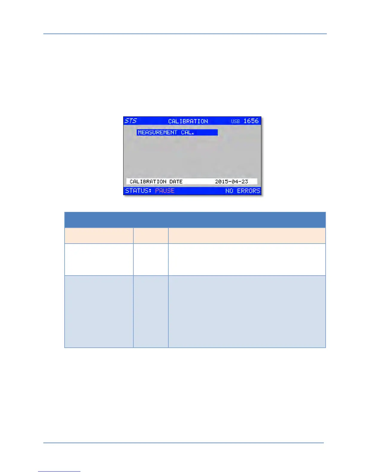CALIBRATION DATE Display This field is not user accessible or editable and only