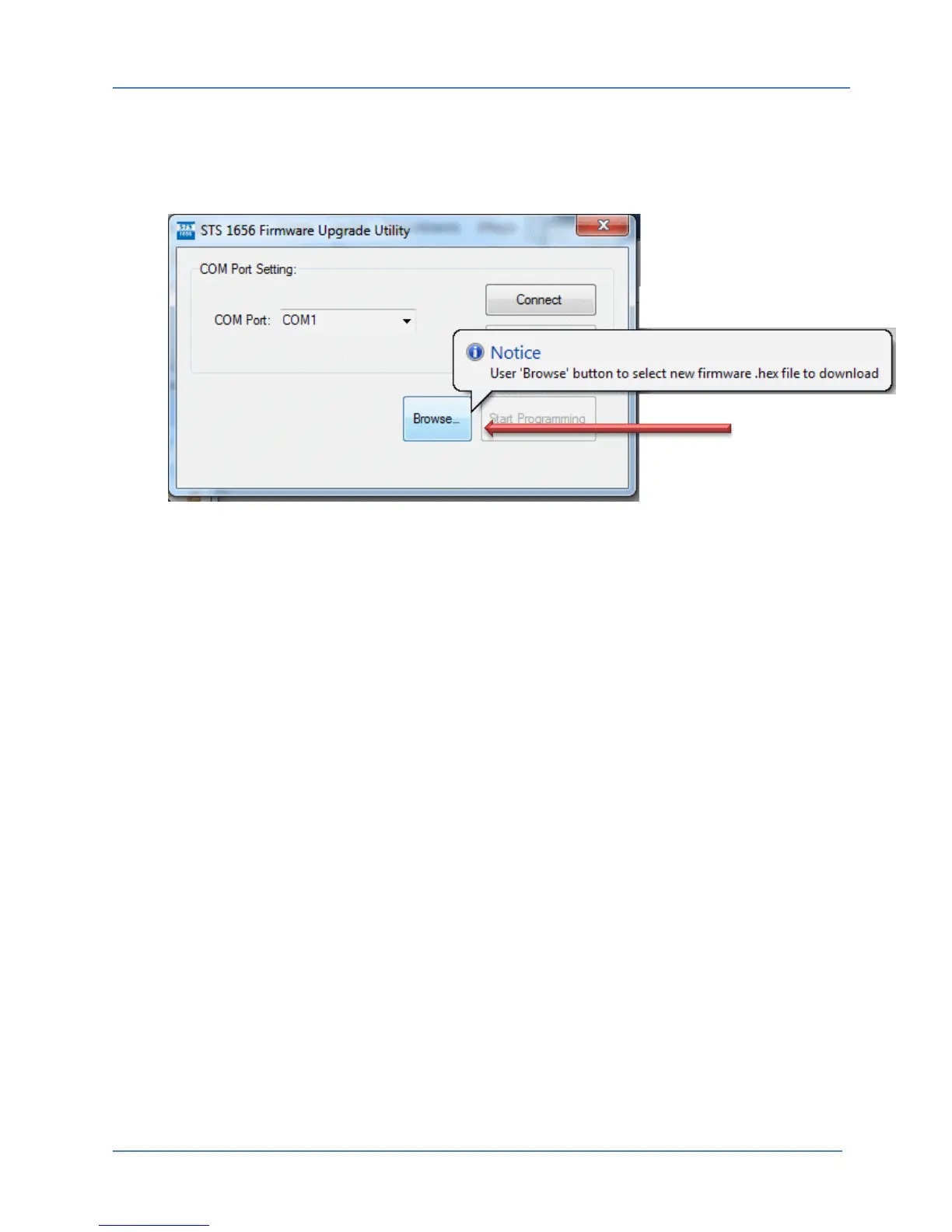 From the flash loader main screen, press the “Browse” button to locate the firmware HEX file