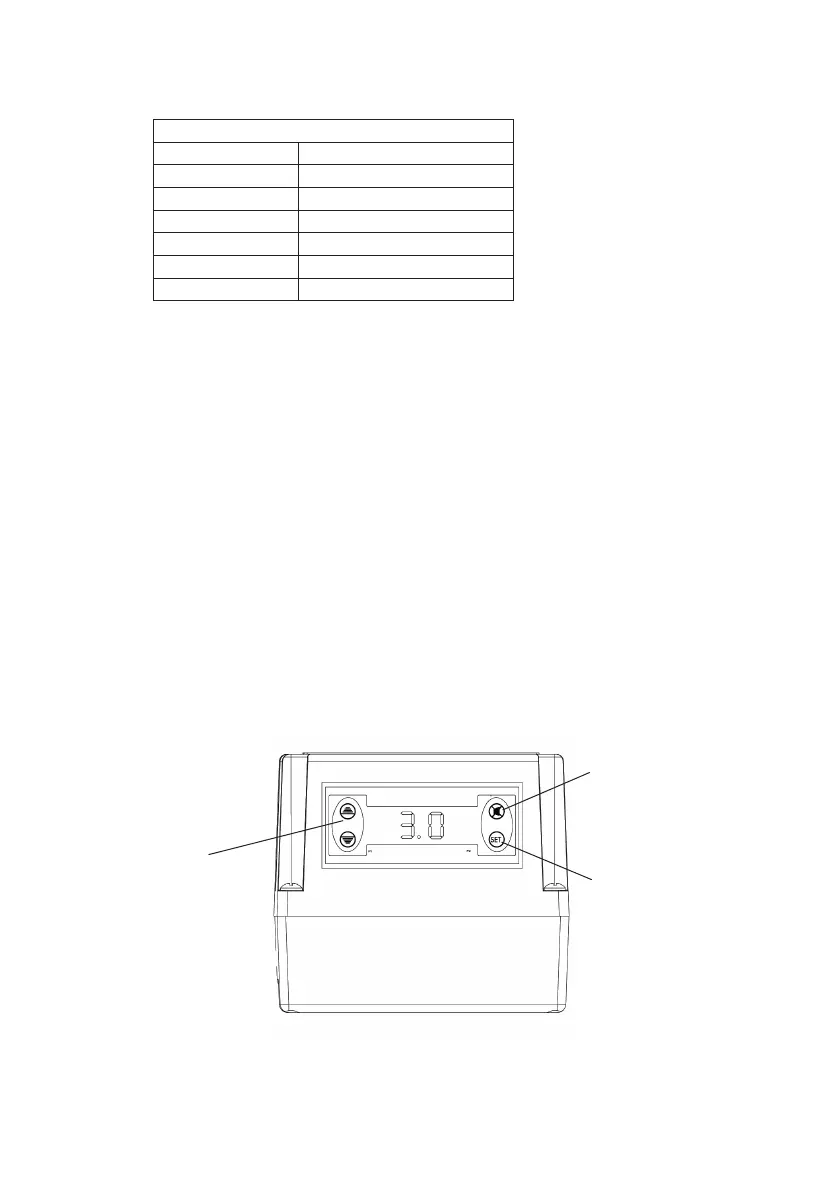 pressing the set button once after each parameter value has been displayed.