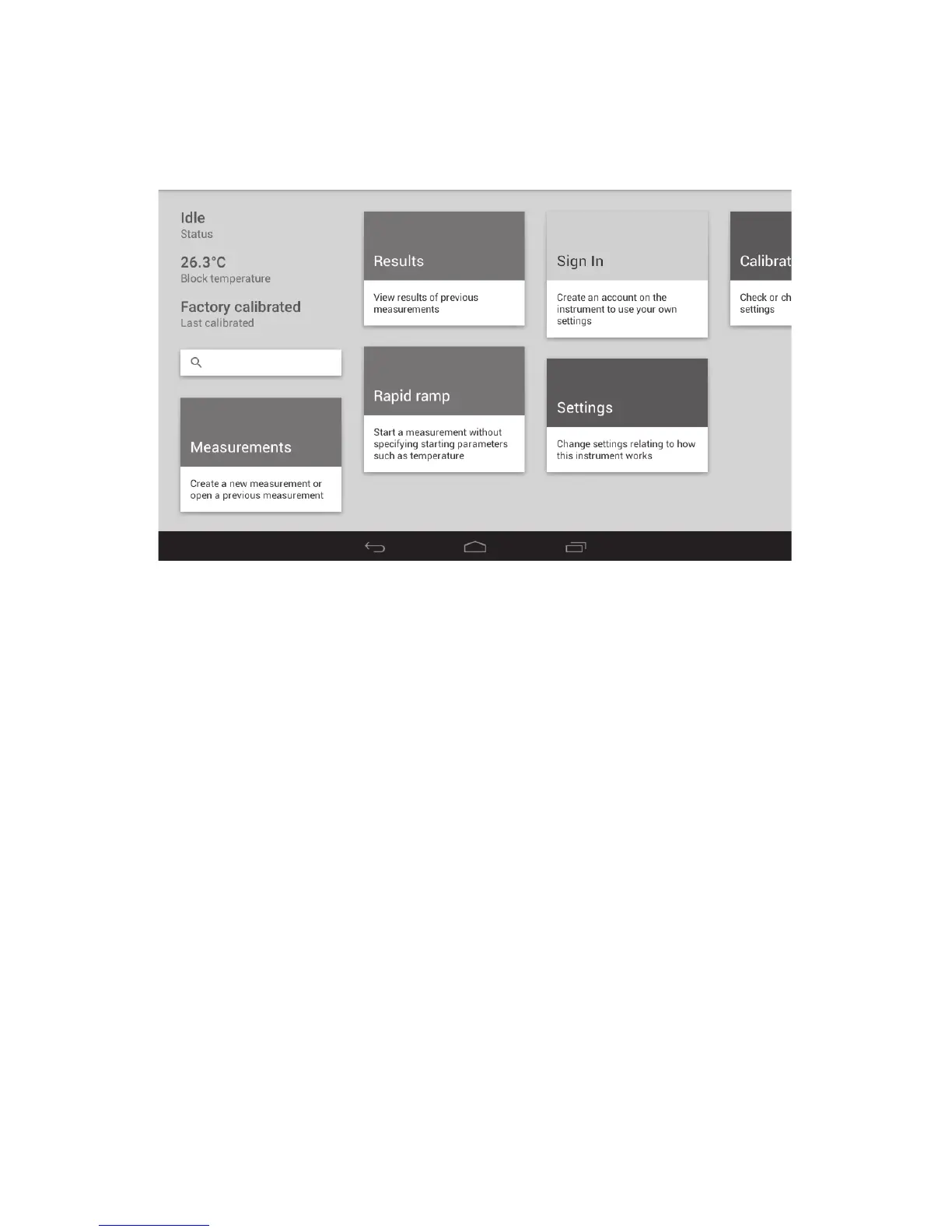 the touch screen interface of the instrument and follows a basic Android user interface. If the number