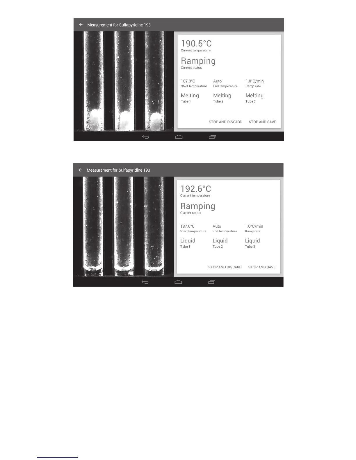 ❖ When the melting point determination has finished, touch ‘OK’ to save the result.