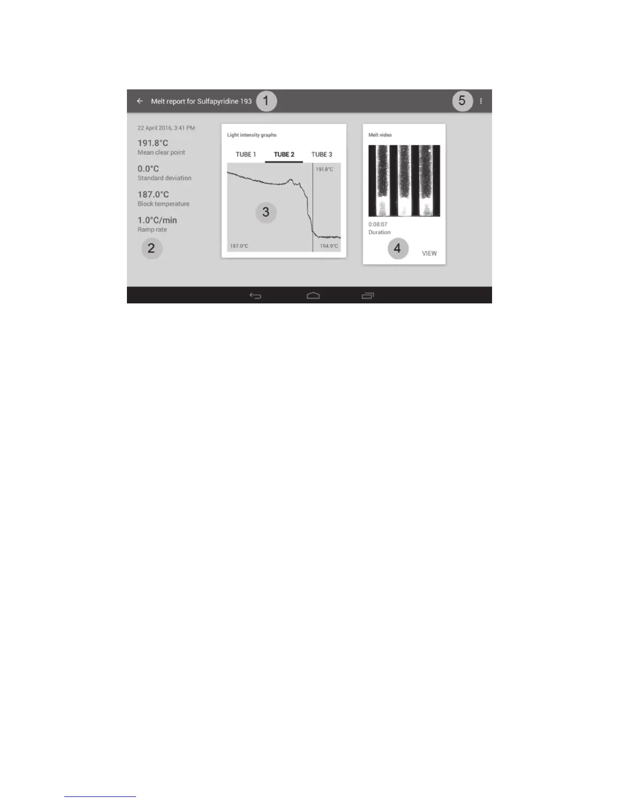 1. File name of the Melt report. The back arrow returns to the previous screen.