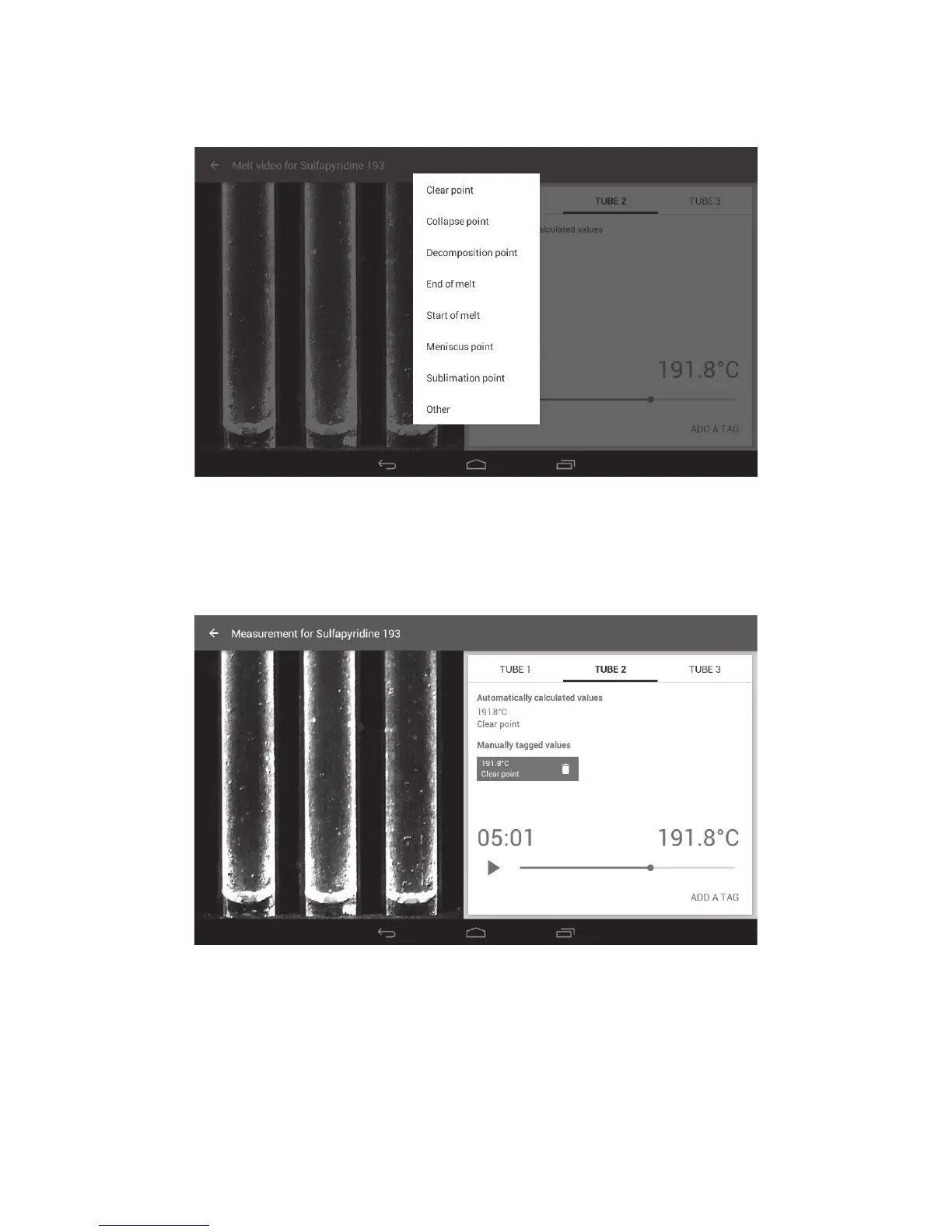 ❖ To add a manual tag at any point in the melting point determination, pause the video playback,