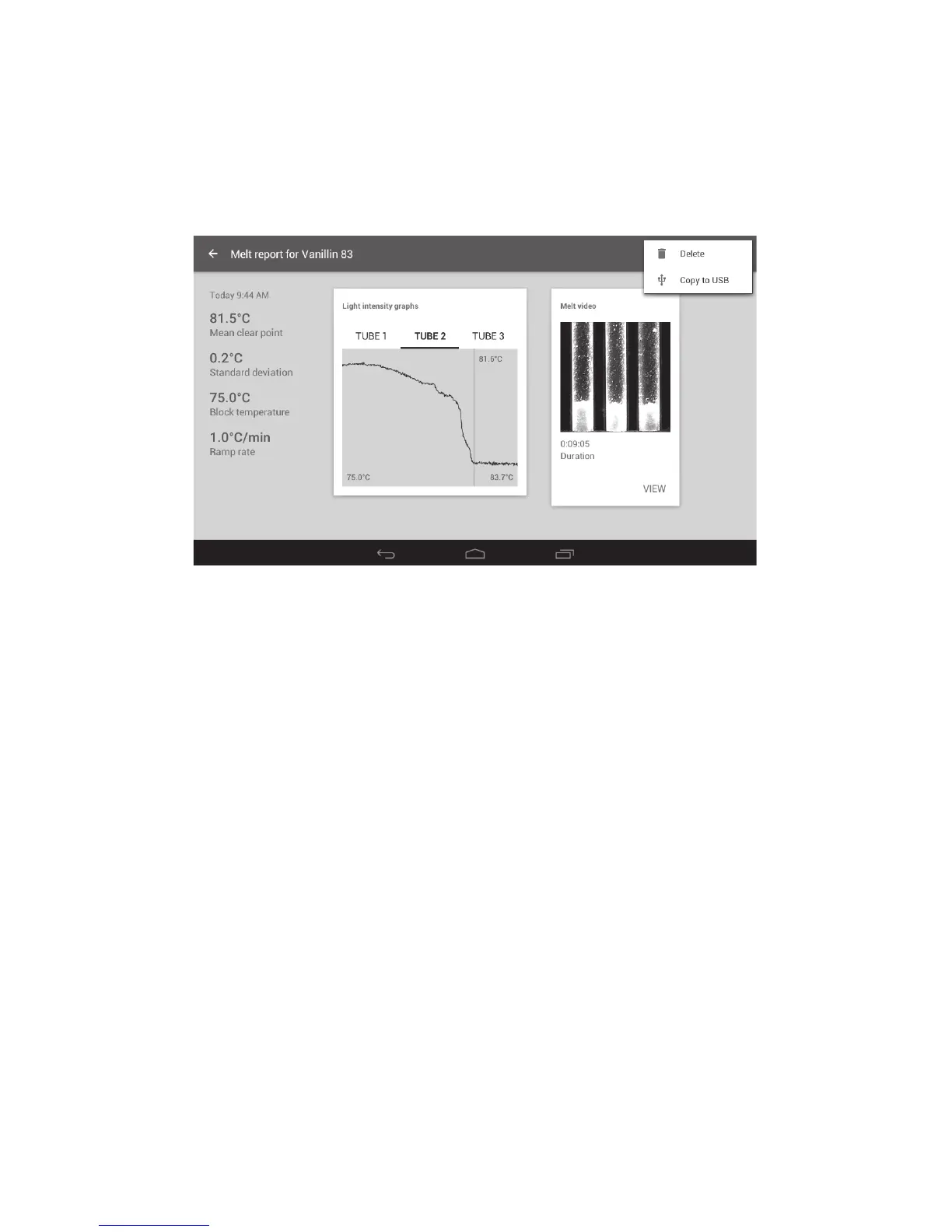 A Melt report can be copied to a USB flash drive for transfer to a computer, or deleted when no