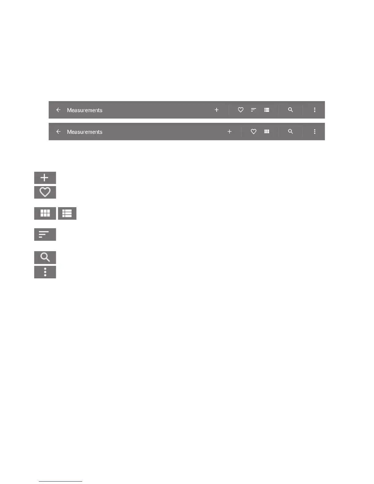 Action buttons in the Measurements screen