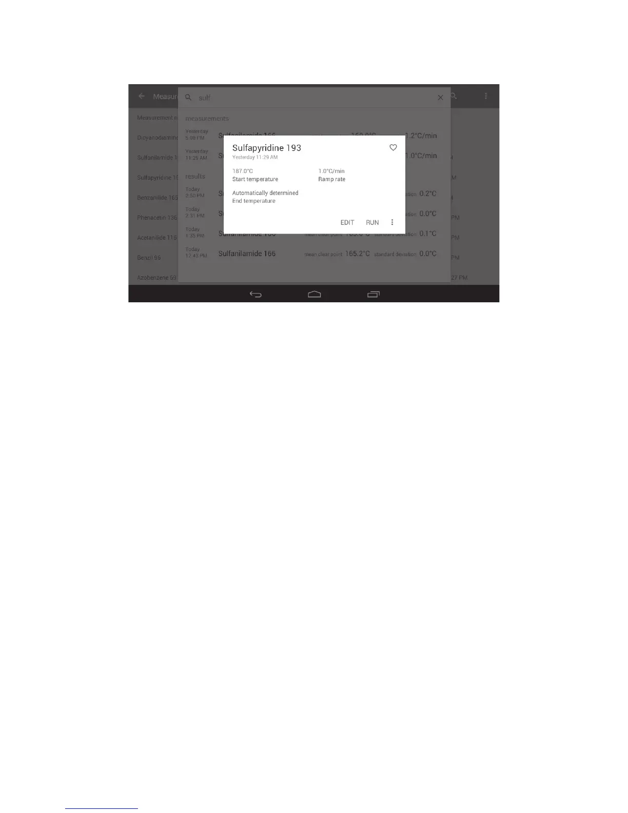 ❖ Touch ‘RUN’ to start the measurement.