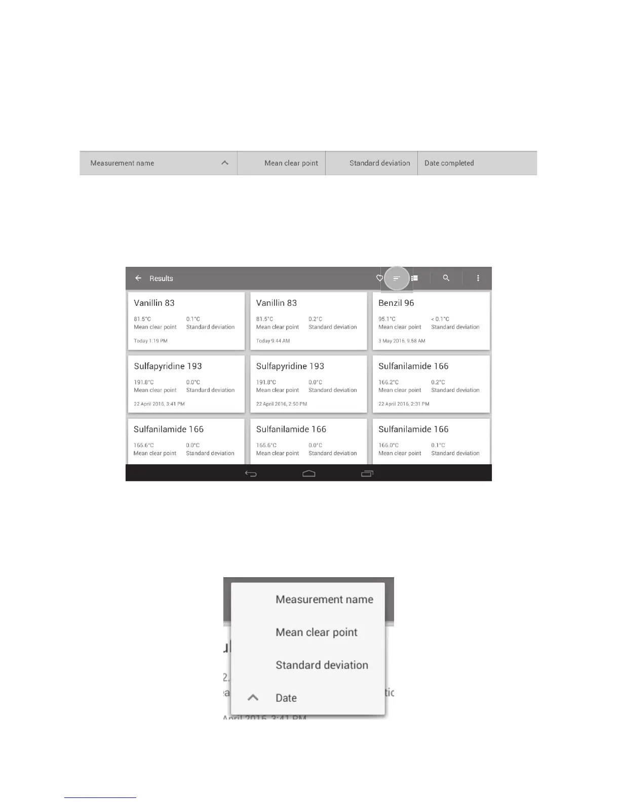 You will have the option to order files by measurement name, mean clear point, standard deviation or