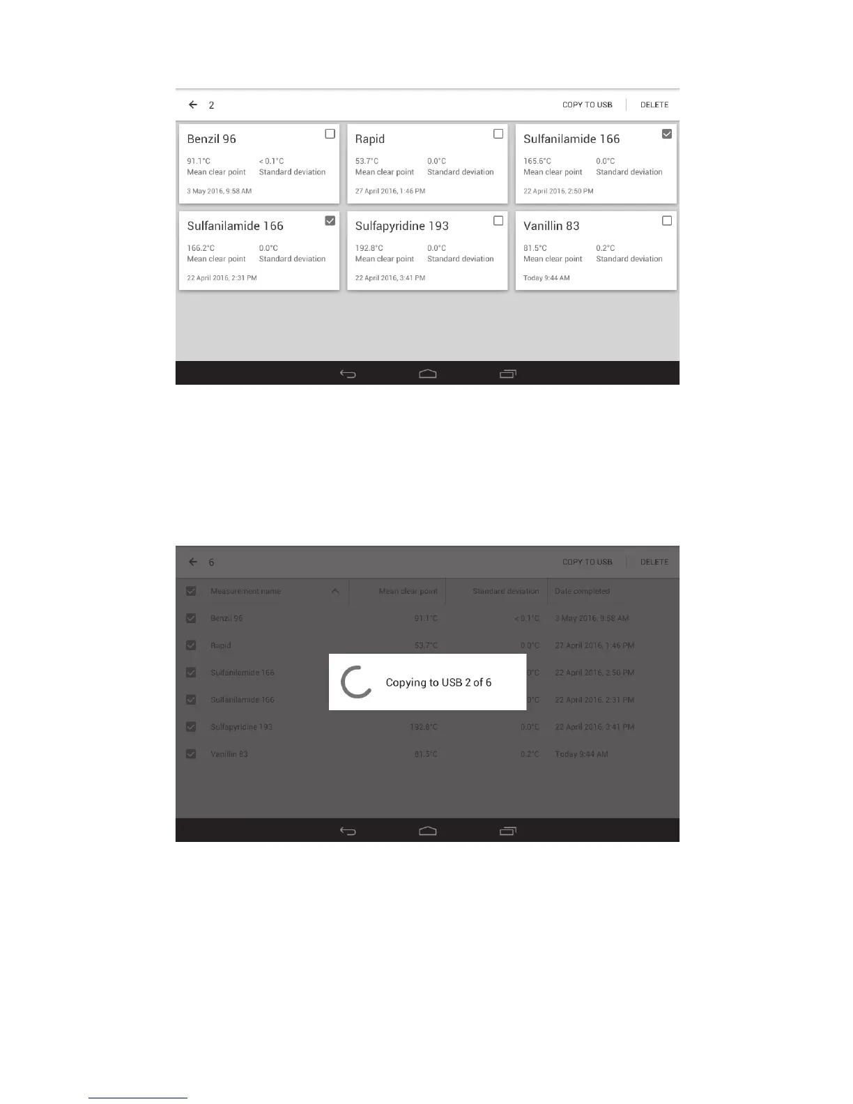 ❖ Touch the selection button next to each result file to be copied or deleted.