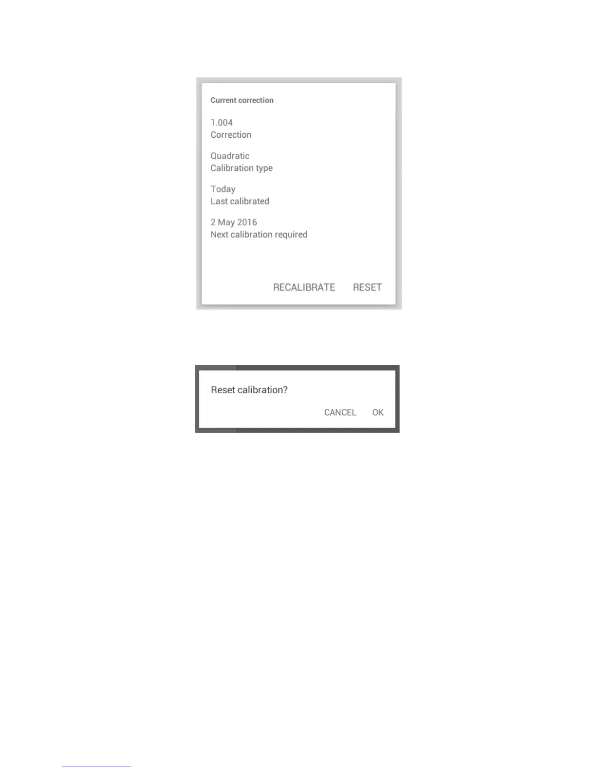 ❖ Touch ‘OK’ to reset to factory calibration.