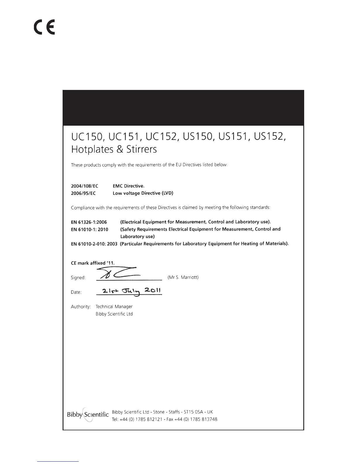 Stuart US152 - EU Declaration of Conformity; Compliance Standards and Directives