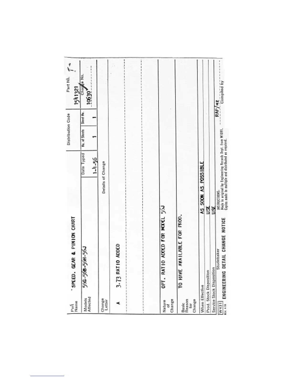 Studebaker Golden Hawk 1956 - Speed Gear and Pinion Chart - 10630
