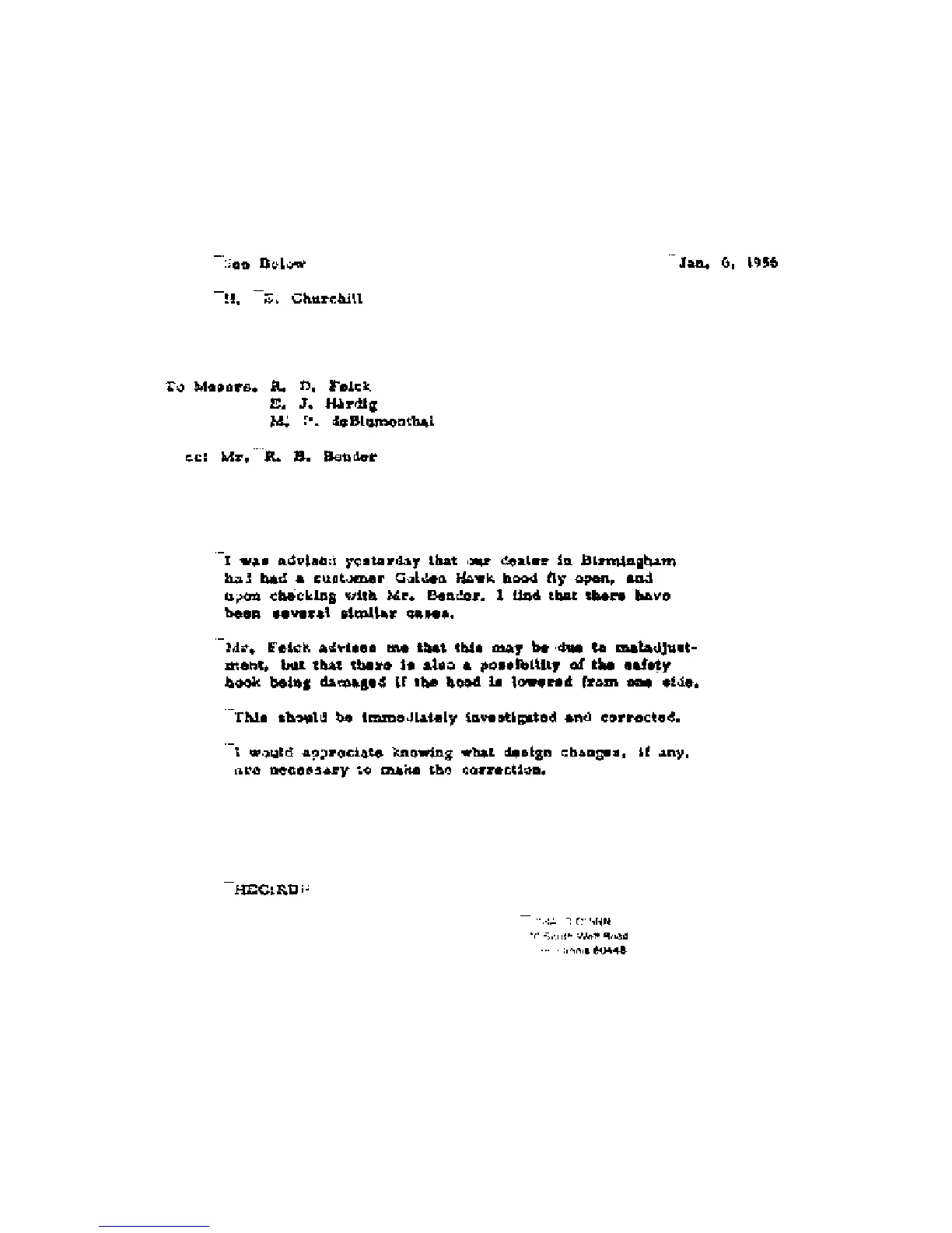 Studebaker Golden Hawk 1956 - Letter Regarding the Hood Flying Open