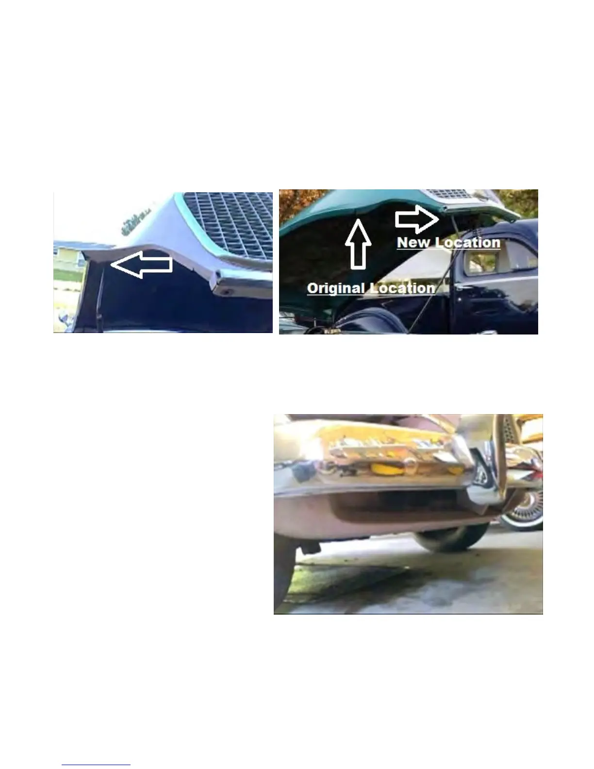 balanced support. The new hole is eight inches to the left of the hood center-line (facing the car