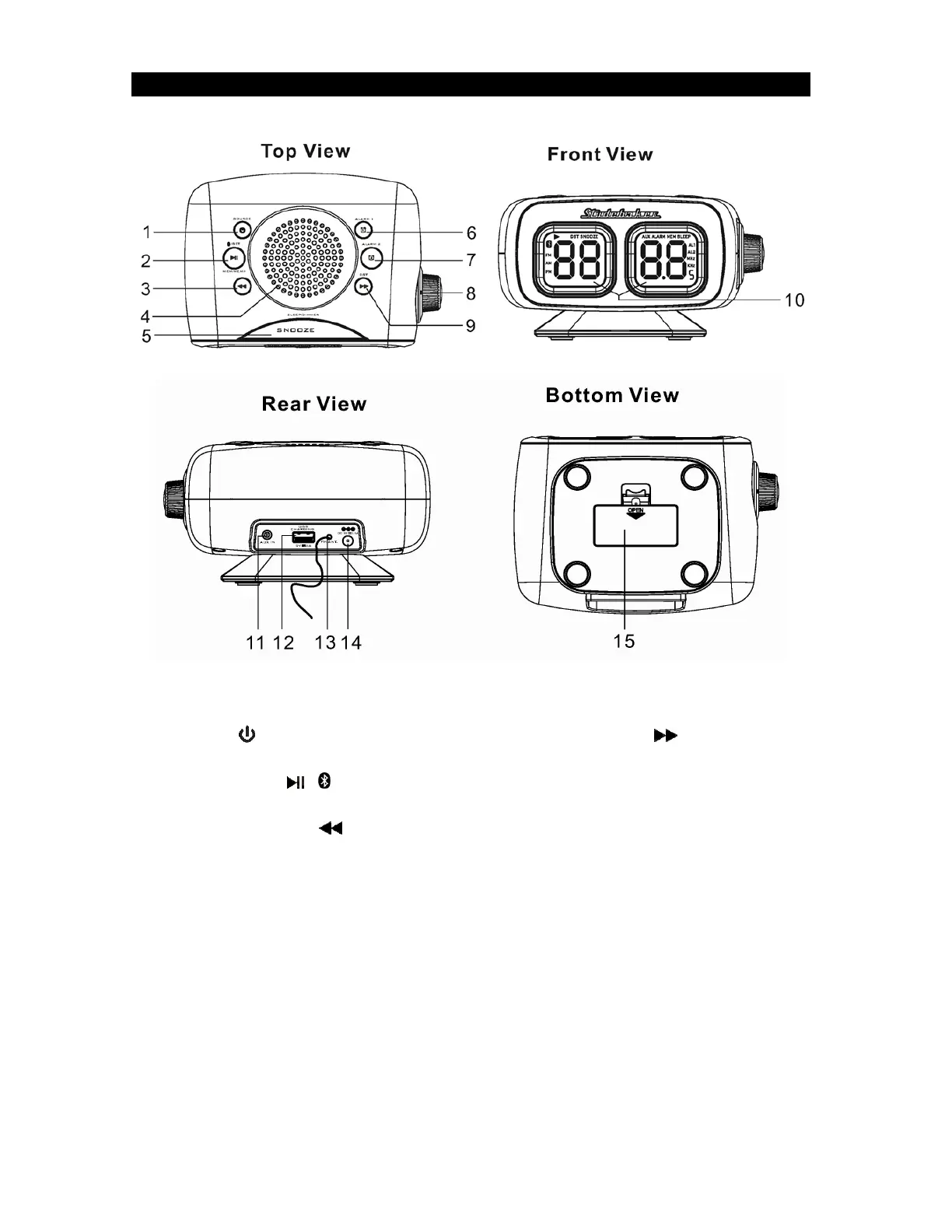 6 ALARM 1 BUTTON 14 DC IN JACK