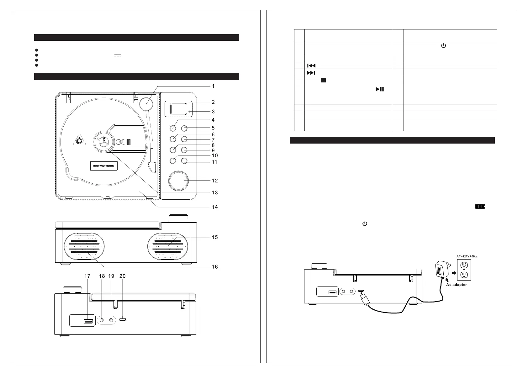 Note: When the unit is not operated for long periods of time, unplug the USB power