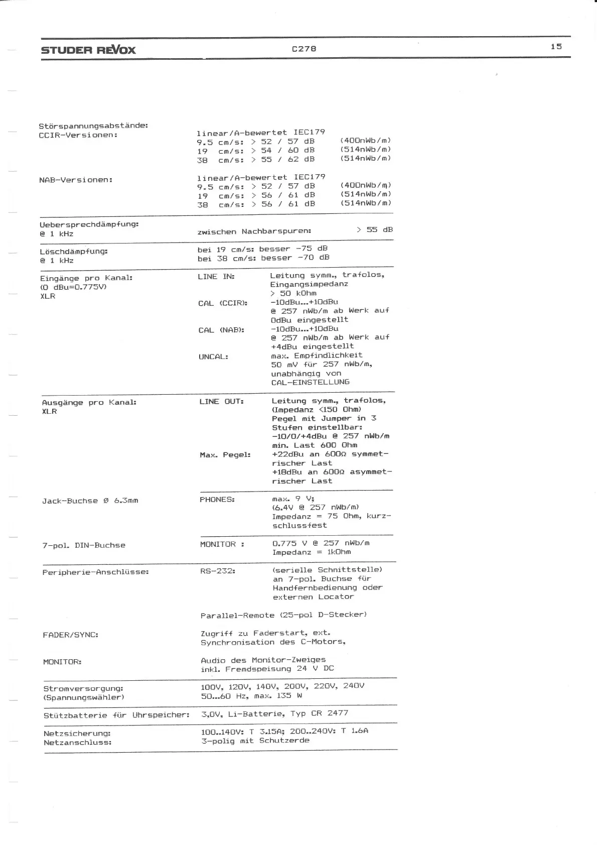 STUDER REVOX C278 - Page 20