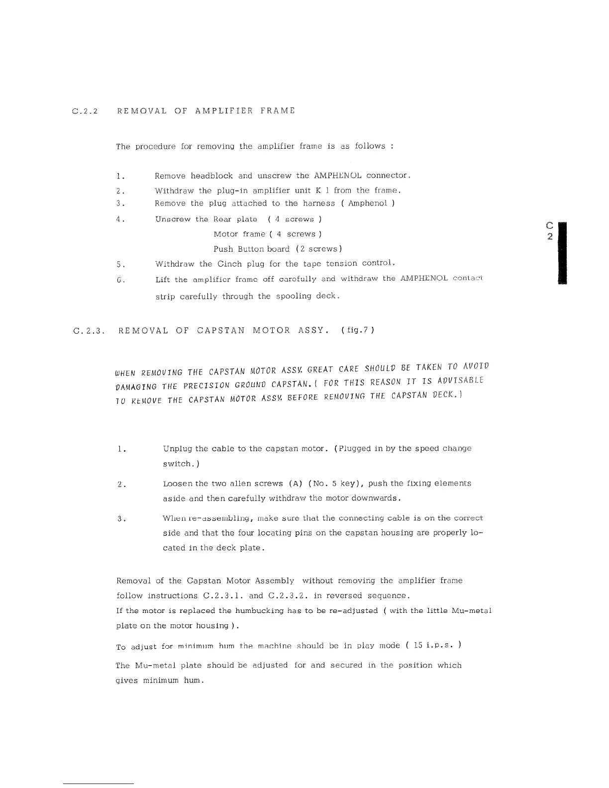 Studer A 62 - Removal of Amplifier Frame; Array