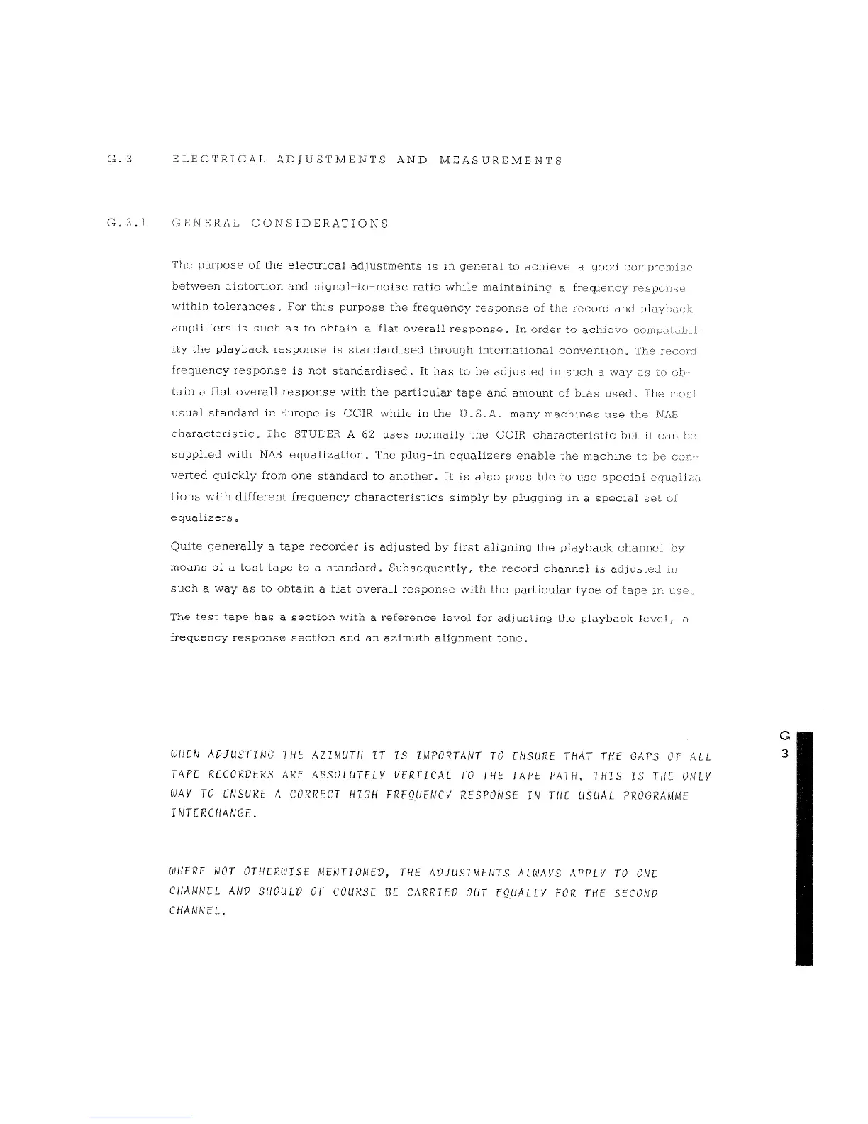 Studer A 62 - Electrical Adjustments and Measurements; Array