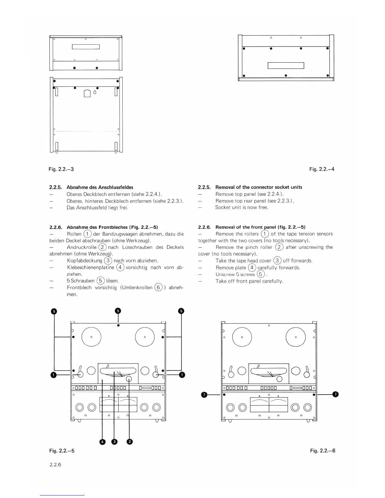 Studer A 67 - Removing Connector Socket Units; Removing the Front Panel