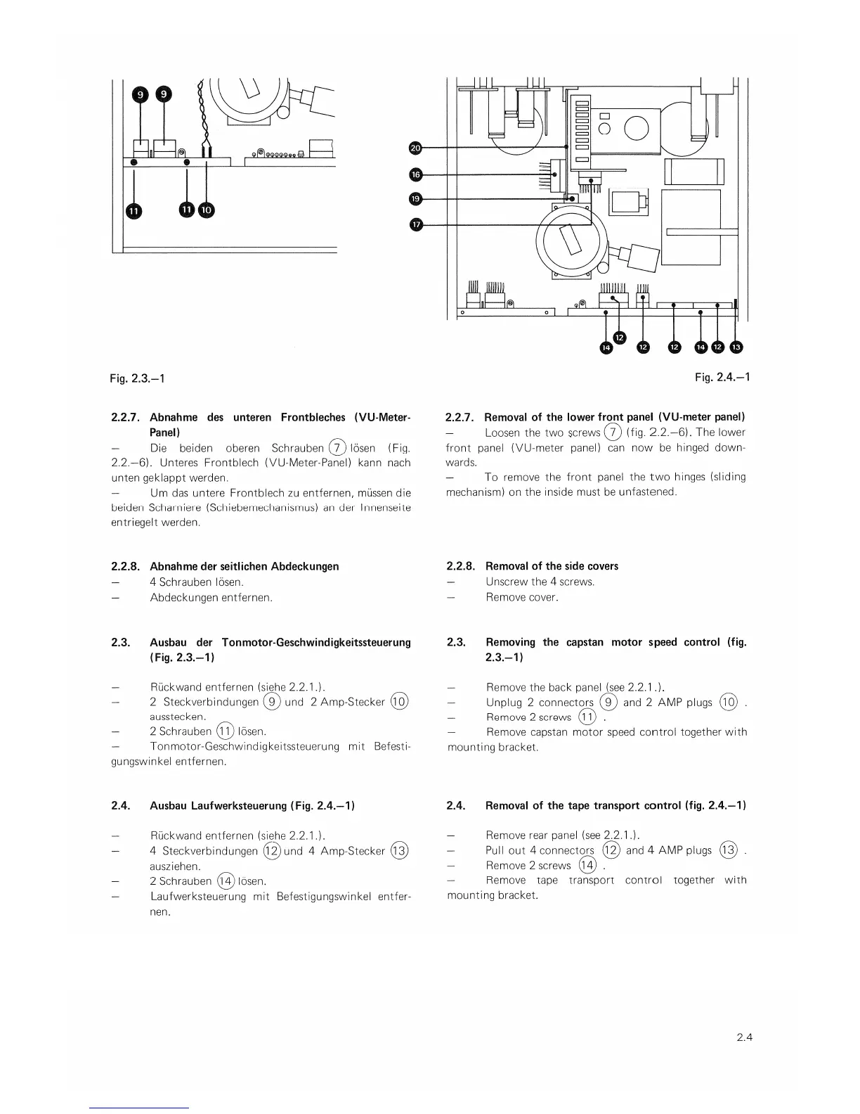 Studer A 67 - Dismantling Procedures (Continued); Removing Lower Front Panel (VU-meter); Removing Capstan Motor Speed Control; Removing Tape Transport Control