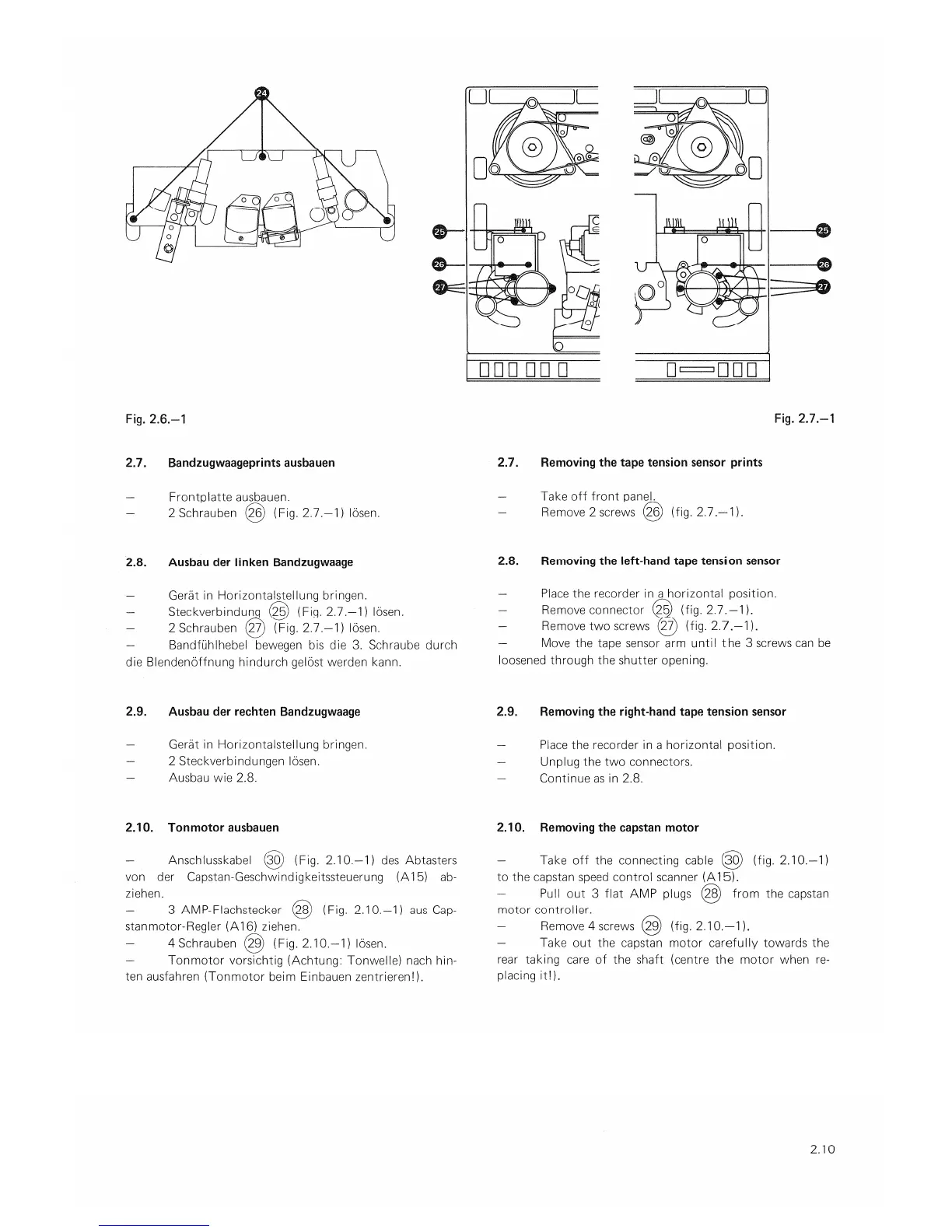 Studer A 67 - Removing Tape Tension Sensor Prints; Removing Left Tape Tension Sensor; Removing Right Tape Tension Sensor; Removing Capstan Motor