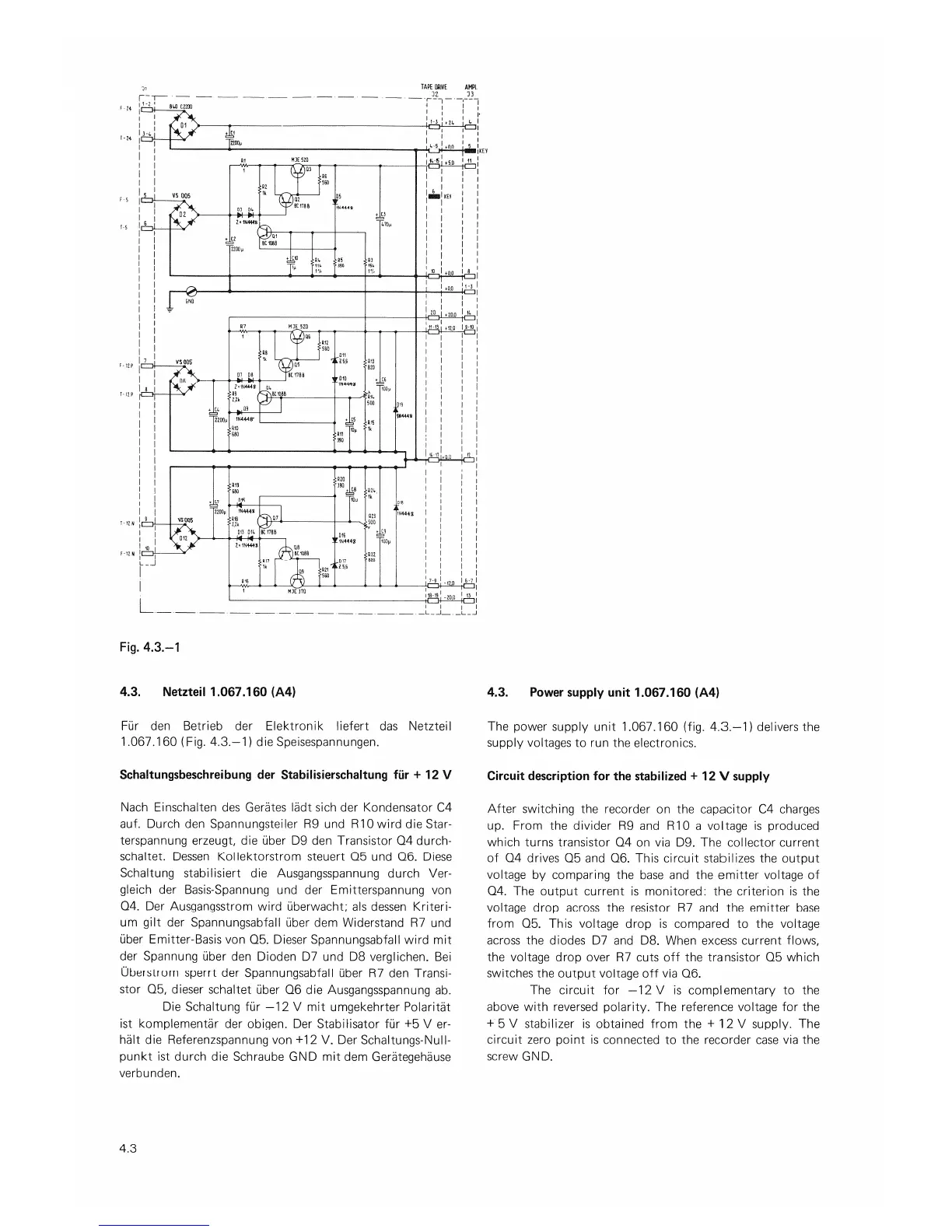 Studer A 67 - Power Supply Unit; Power Supply Unit Description; Stabilized +12 V Supply Circuit