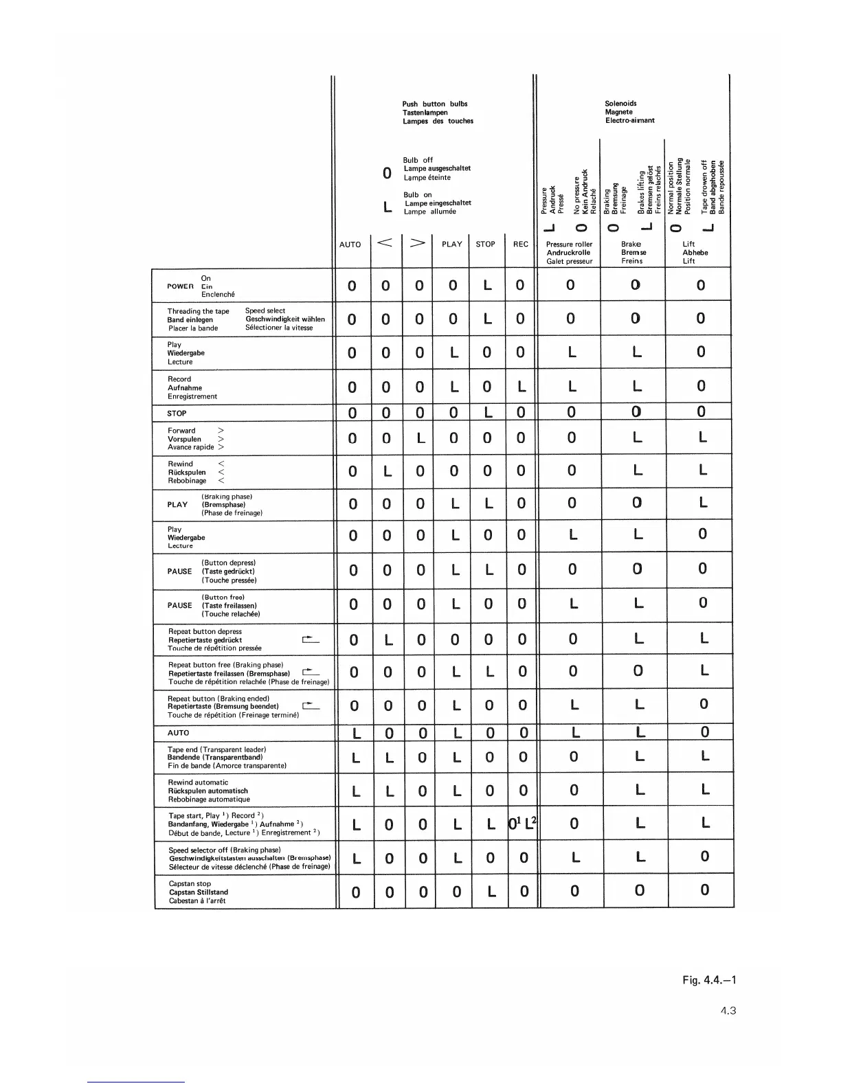 Studer A 67 - Tape Transport Control Logic; Tape Transport Controller (A5); Operating Mode Table