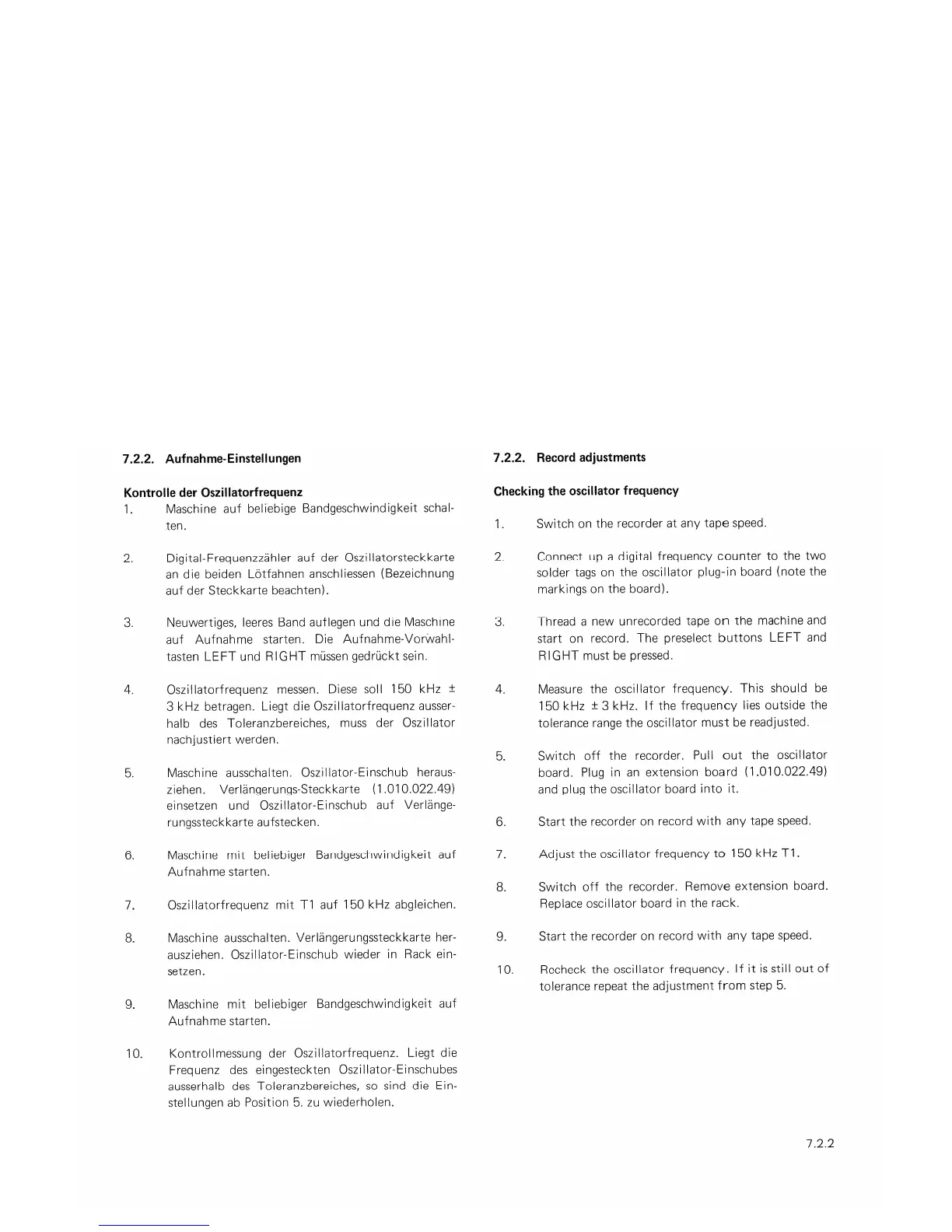 Studer A 67 - CCIR Record Adjustments; Checking Oscillator Frequency