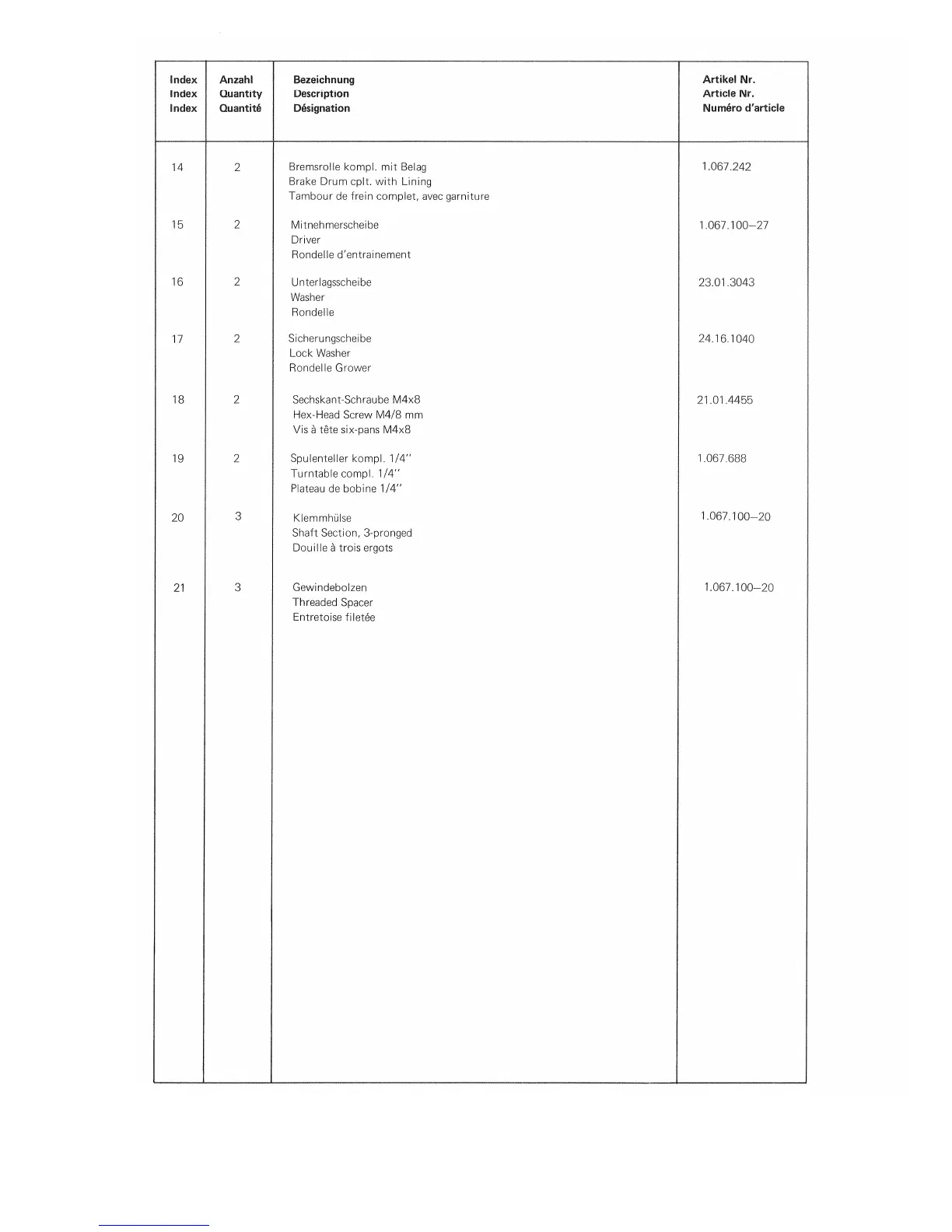 Studer A 67 - Brake System Parts (Continued); Brake Drums and Drivers