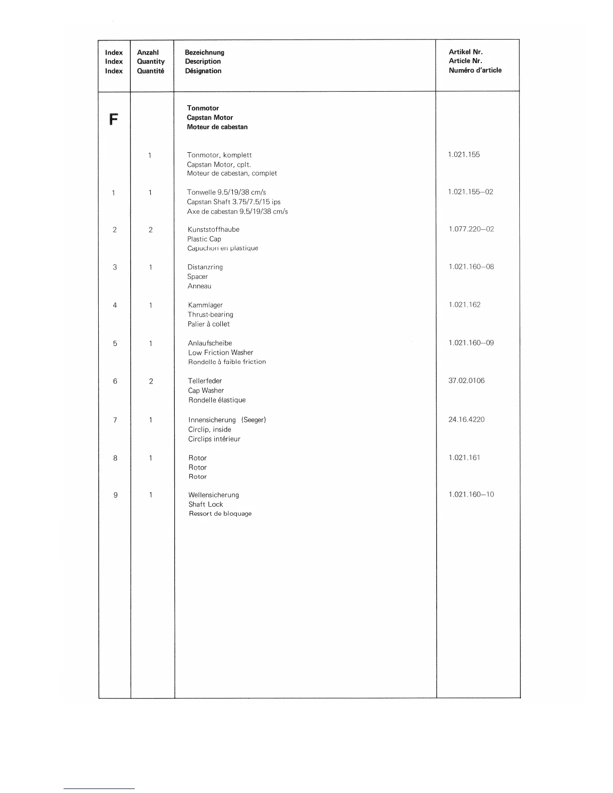 Studer A 67 - Capstan Motor Parts; Complete Capstan Motor; Capstan Shaft