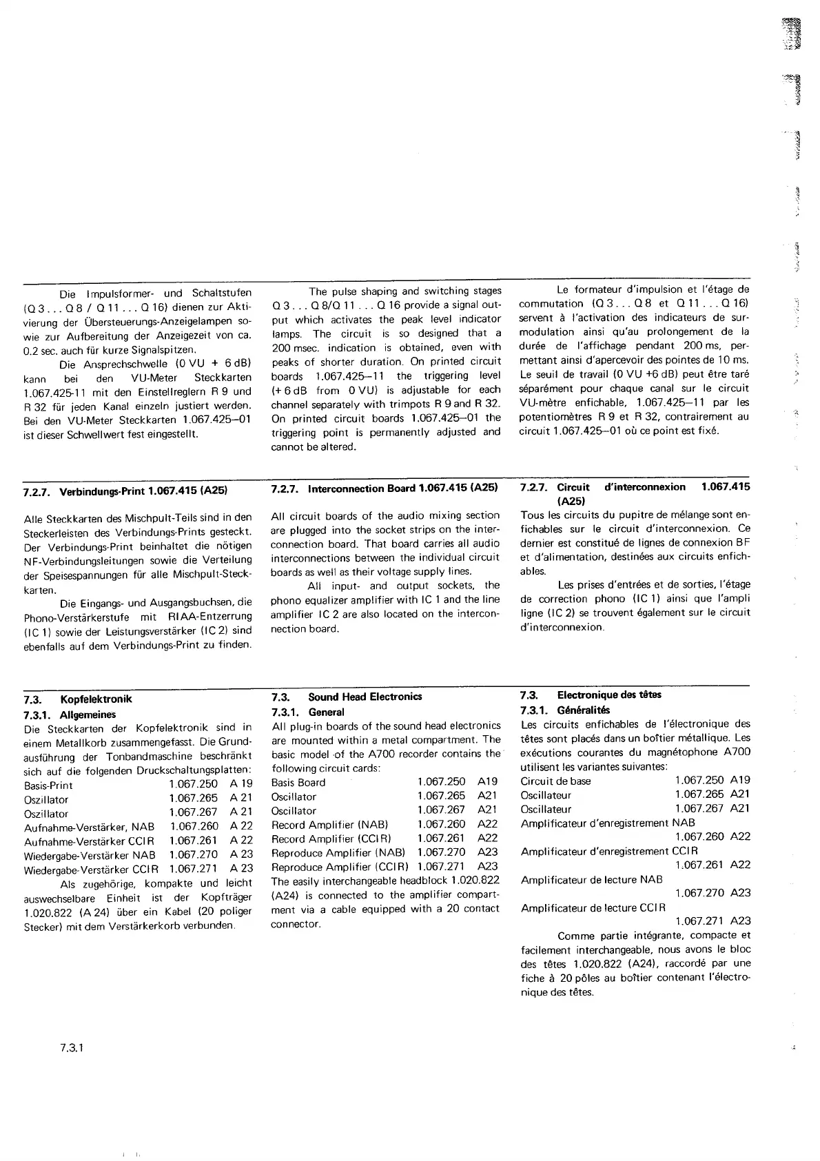 Studer A700 - Interconnect Board; Sound Head Electronics