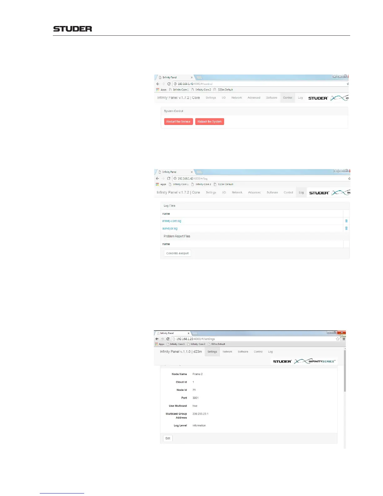Control On this page, the Infinity Core software service can be restarted, or a hardware