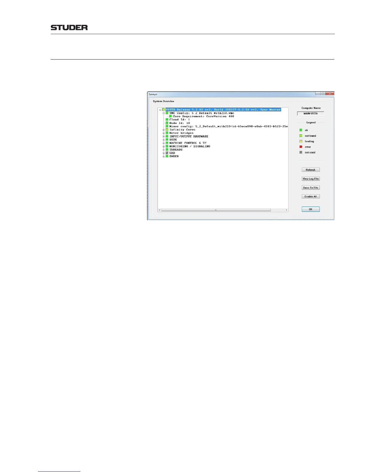 The status of the Infinity Core can be monitored through the Surveyor tool