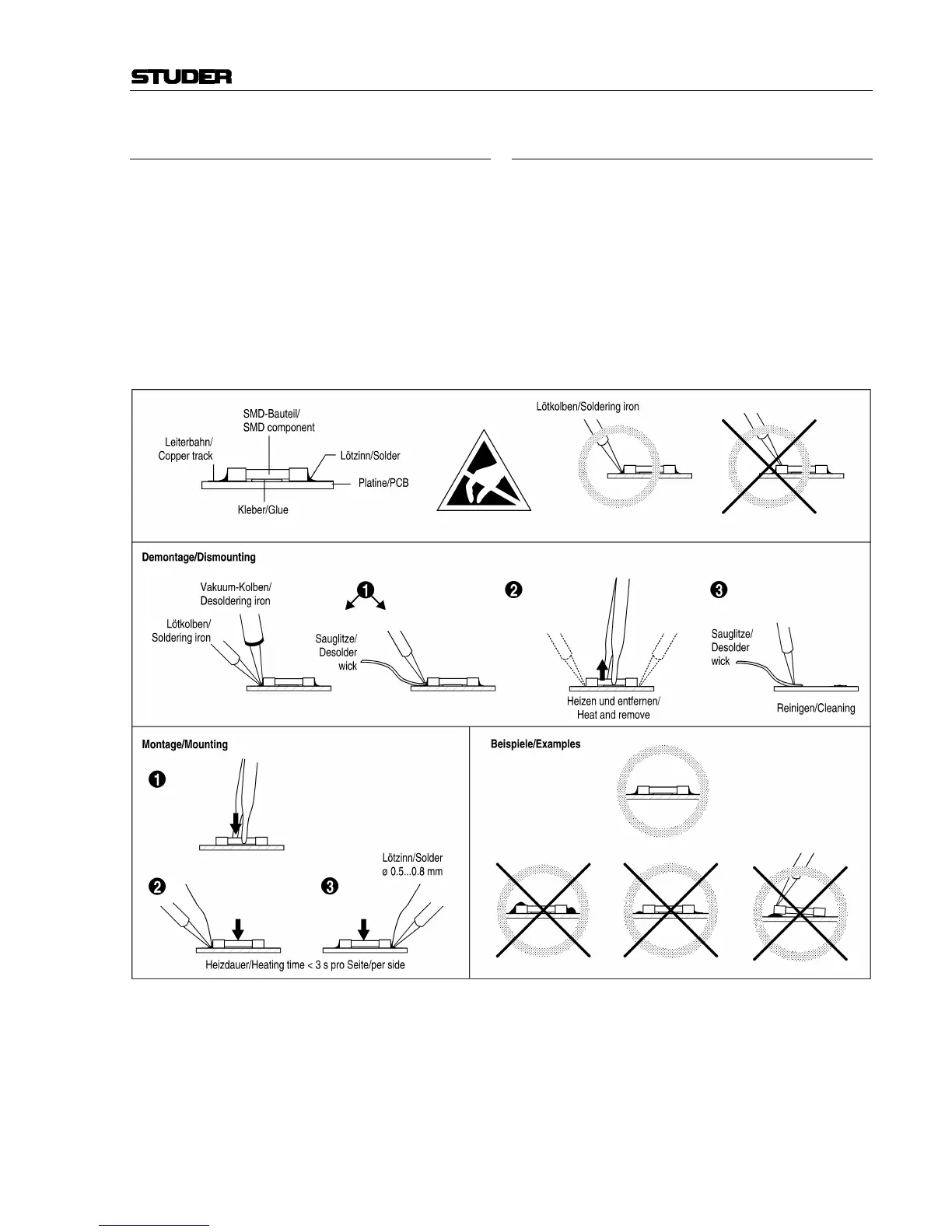 Der Austausch von SMD-Bauelementen ist ausschliess-